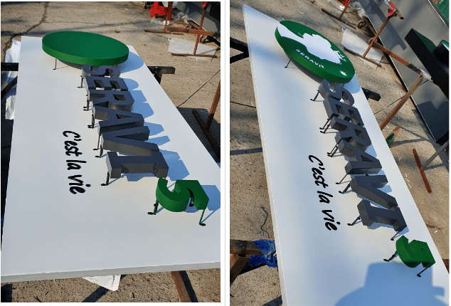 led 채널간판 트러스는 레이져로 제작하였고 뒷면에 led를 부착하여 켰을때 조명이 들어오게 만들었으며 트러스 전면에는 채널 간판을 부착하였습니다. 또 돌출간판은 기존에 달려있던 후렉스 간판을 철거하여 천만 교체하여 표현하였습니다. 친구로부터 소개받아서 간판을 하게 되었는데 만족한 사장님께서 감사하게도 또 다른 곳을 소개해 주시네요.